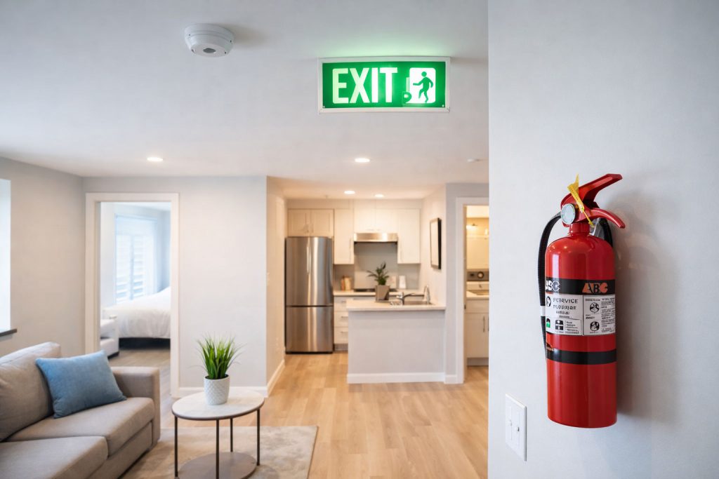 According to the Guide, short-term rental accommodations must have, at a minimum, basic firefighting equipment, such as: